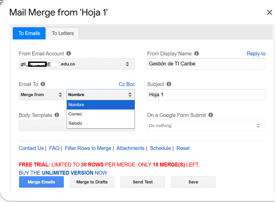 Este post nace de una necesidad que tenía desde hace mucho tiempo: lograr una combinación de correspondencia a través de mi correo institucional en Gmail. A pesar de haberlo intentado en varias ocasiones, no había obtenido los resultados esperados.