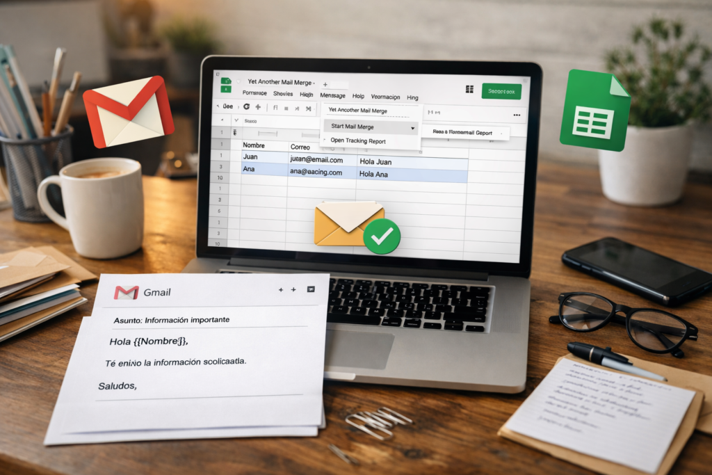 Sin embargo, Gmail por sí solo no tiene esa función como Microsoft Outlook con Microsoft Word. En el ecosistema de Google Workspace se hace usando Google Sheets + una extensión o Apps Script.